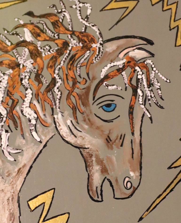 This piece was inspired by a pony that I know who has a crazy mane, He is the sweetest pony and a best friend to my mare. He has a bold, funny, outgoing, tough personality. This painting would look great in a living room, cottage, vacation home or even a business. This canvas is ready to hang and h...