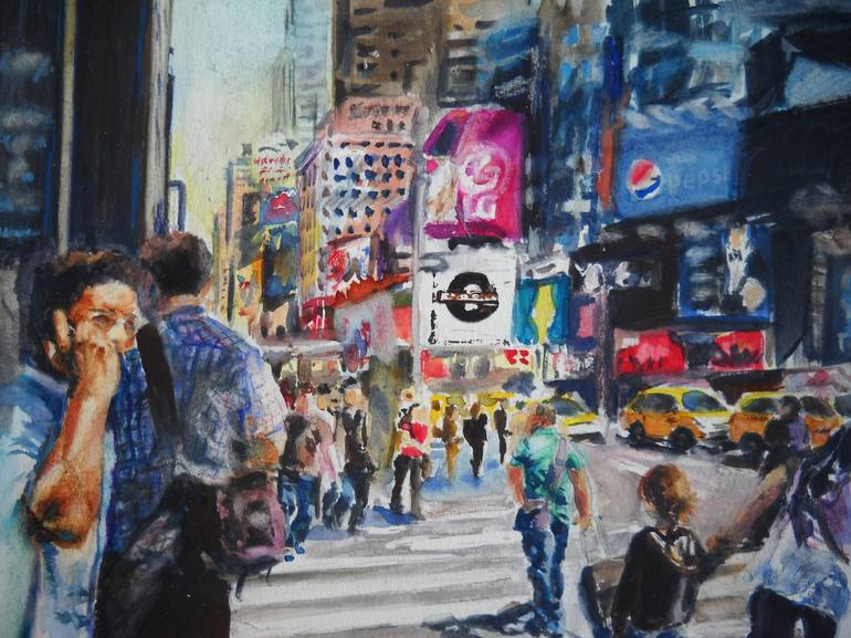 A friend of mine from elementary school went to New York a while back,and she took some pictures and posted them on Facebook.I asked her if I could use them ,and she said"go for it!" I really wanted to capture the hustle and bustle of the city and all the colors and characters.
