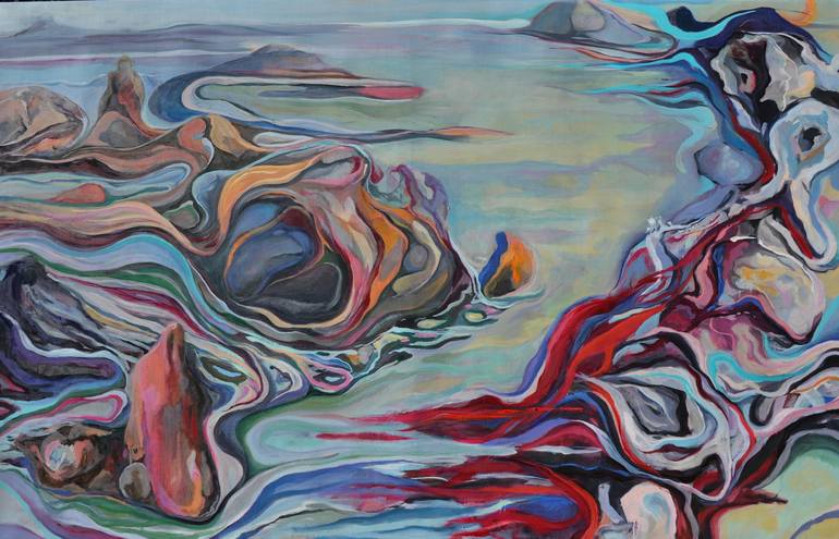 Partially inspired by the myth, Cantre'r Gwaelod, the painting reveals the remnants of an ancient forest on Borth Beach in Mid-Wales. The disfigured, 4000-year-old trunks are only visible at low tide, giving a sense of awakening figures that also reflect ghost-like silhouettes of soldiers from WWI. ...