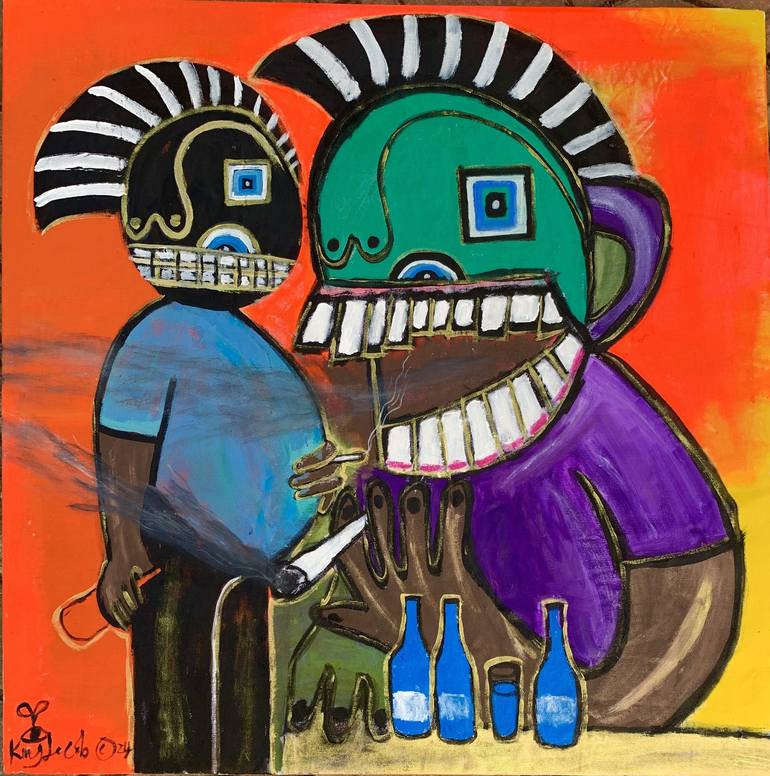 Inspired by my favorite living artist “George condo. This painting is telling a story about my childhood friend who got missing since 2017 , he was smart and loves drinking Heineken beer and smoking a lot, we all miss him.