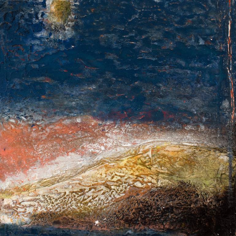 In my art, whether it is in the subject matter or the technique, I always ask: “What is behind all that?” It can be a message or a feeling. I create art that reveals and hides, exposes and conceals. I like the viewer to wonder and imagine. When I begin a painting, I never know what the end results will be. I start by laying in the larger shapes which define the structure and set the movement of the piece. I further enhance the design to establish a strong composition. I add texture and color to generate tension within the elements, and I use the layers to add depth and a three-dimensional illusion. As a mixed media artist, I work with ordinary, everyday materials, such as paper, cardboard, sand, and spackle. My favorite technique is pouring water mixed with glue and pure pigments over the texture I have created, that grounds the piece. The water finds its natural flow and accentuates and reveals the surface finish. The biggest challenge I face comes at the end of creating a piece. I stop when the painting is pleasing to my eye, and I see balance in the composition and colors. The real interpretation of the paintings is not what I see, I cherish what the individual viewer sees.