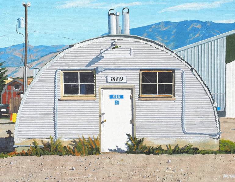 A building at the county fairgrounds in Bozeman, Montana. Painting is on canvas-wrapped board.
