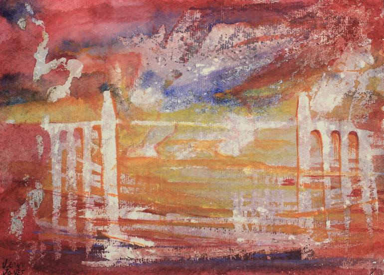 Menai Bridge by Thomas Telford is a classic image of Anglesey. The sunsets around the Menai are spectacular and I have chosen to illustrate the striking red sunsets in watercolour. The image is more illustrative than I usually do and if you notice you can see a red dragon in the sky.