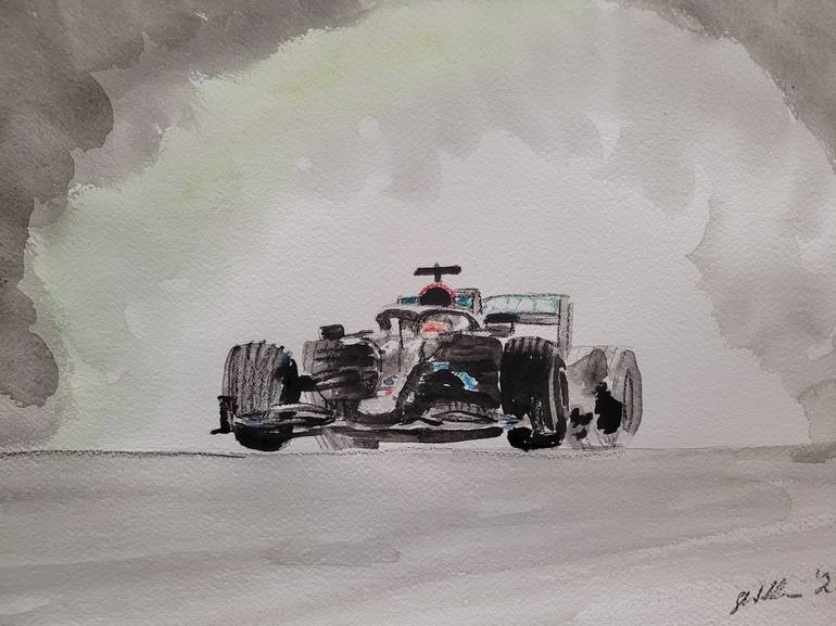 Hamilton in the wet v3, Styrian GP, Austria '20. Soluble pencil and watercolour. Paper 300 g/m2. Watercolour and soluble pencils A3 size