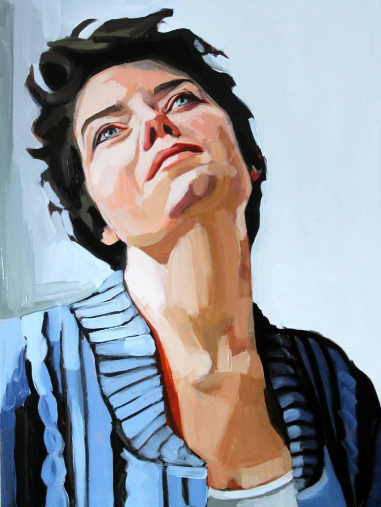 This portrait is painted in oil on a lightweight, ready-to-hang birch panel. I photographed my model, Meredith, in her studio space with beautiful natural lift pouring in. We were both on residency at the Vermont Studio Center, the largest international residency program for artists in the US.