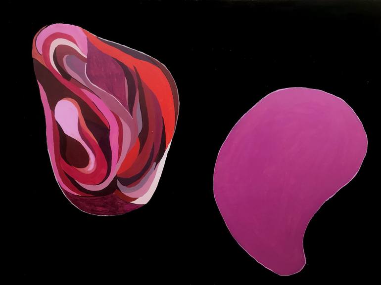 Series of organic abstractions that led me to primitive or bean-shaped figures, with ranges of the same color that move and compensate for the rest of the empty space. Like the first cells of a living being. In constant metamorphosis