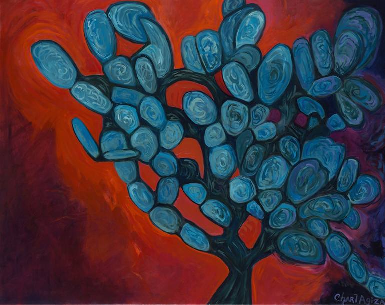 This painting was inspired by a very large, old cactus in Mexico. It lives in front of a brilliantly colored wall. Original : Sold