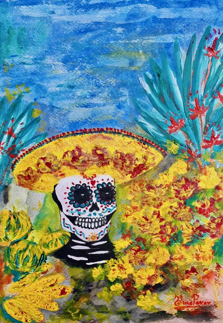 Day of the dead is a holiday that celebrates life in Mexico, and this painting with its vibrant colours gives light and joy to any space where it will be placed. Calavera, corn, cempasuchil flowers all come to celebrate life and death at the same time. An eye-catching accent in kitchens and bedrooms...