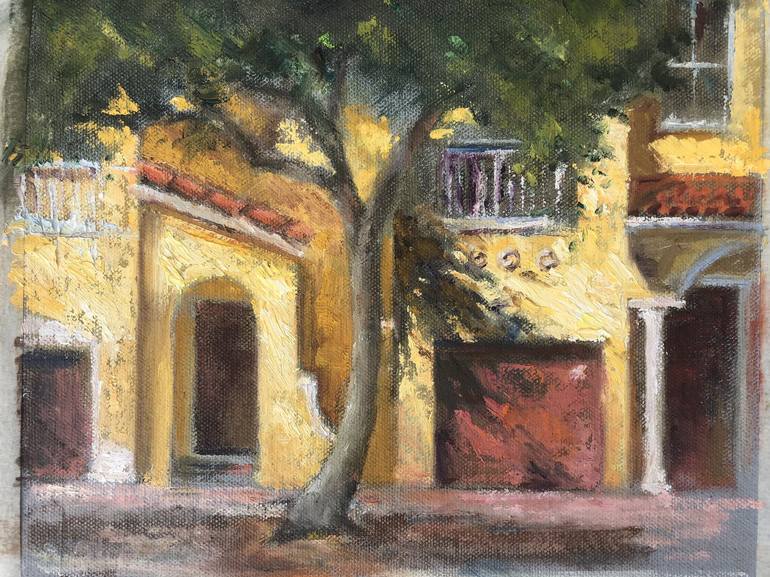 I painted the front of this apartment while looking across the street from my daughter’s apartment garage in Miami, Florida. The yellow color reminded me of Van Gogh paintings.