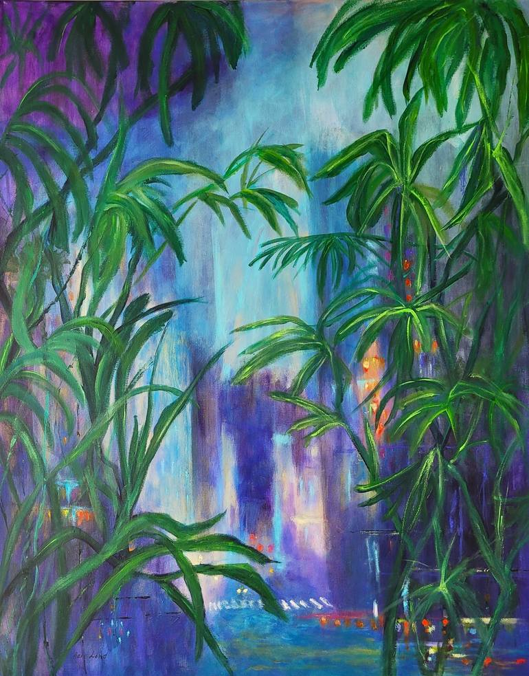 Cities are fascinating because they never go to sleep. There is always something going on: traffic still passing by, lights changing, deep contrasts... Great for our fantasy! A great challenge for an artist to pin down on the canvas! 'Midnight in the City' is painted in deep blue midnight-blue c...