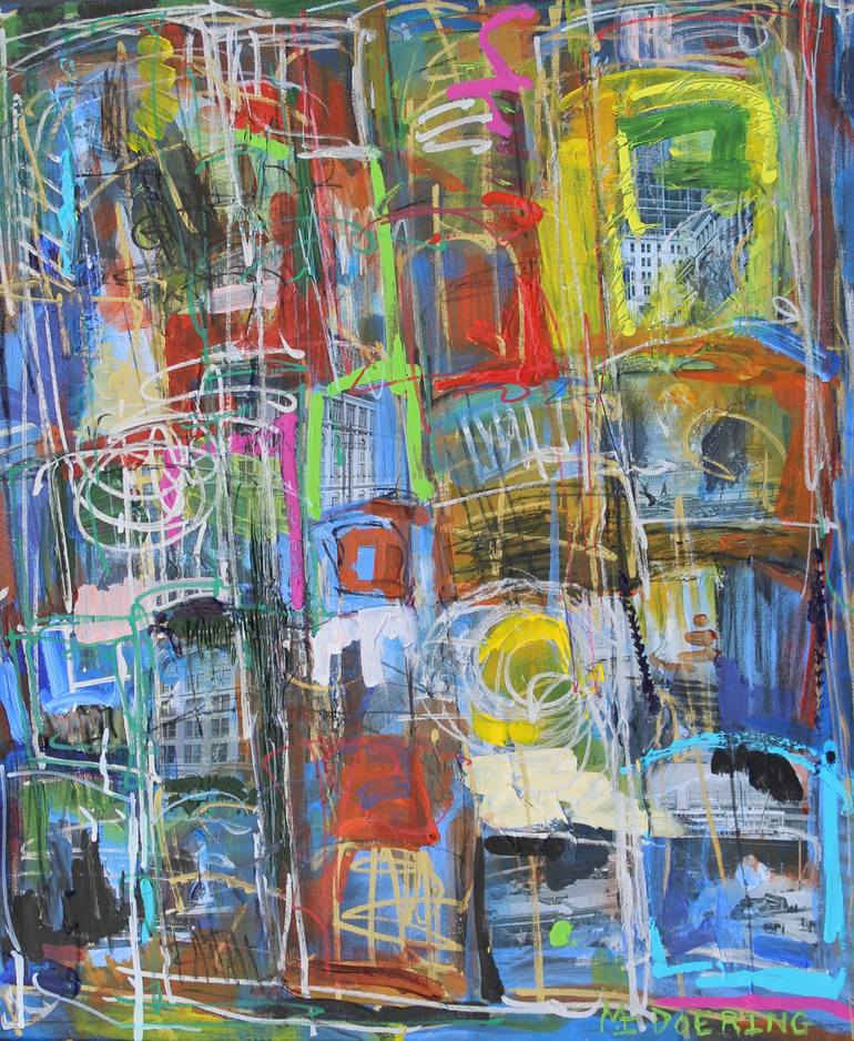 "Midtown Morning" is an artwork depicting New York City through an expressive and abstract lens. It is done primarily in acrylic on canvas, but it also includes charcoal, collage, and paint marker. It was the artist’s hope that the viewer would feel the history and energy of the city in this piece...