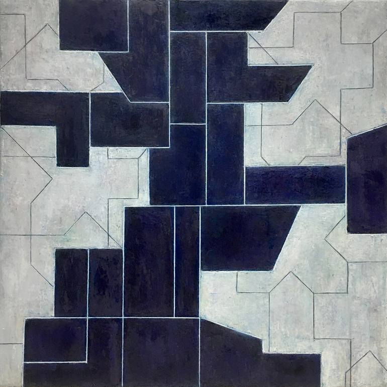 Oil paint, cold wax medium and marble dust on 2-inch deep gallery wrapped canvas. The painting continues around the edges and is ready for hanging or placed in a floating frame. From the series ANCIENT MODERN PAINTINGS The MODERN geometric construction evokes a robot-like biomorphic shape. The A...