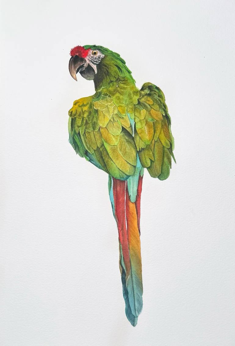 Painting of military macaw. Watercolor original painting on coton paper 300G . The painting is not framed. – include the certificate of authenticity; – shipped ROLLED, no frame