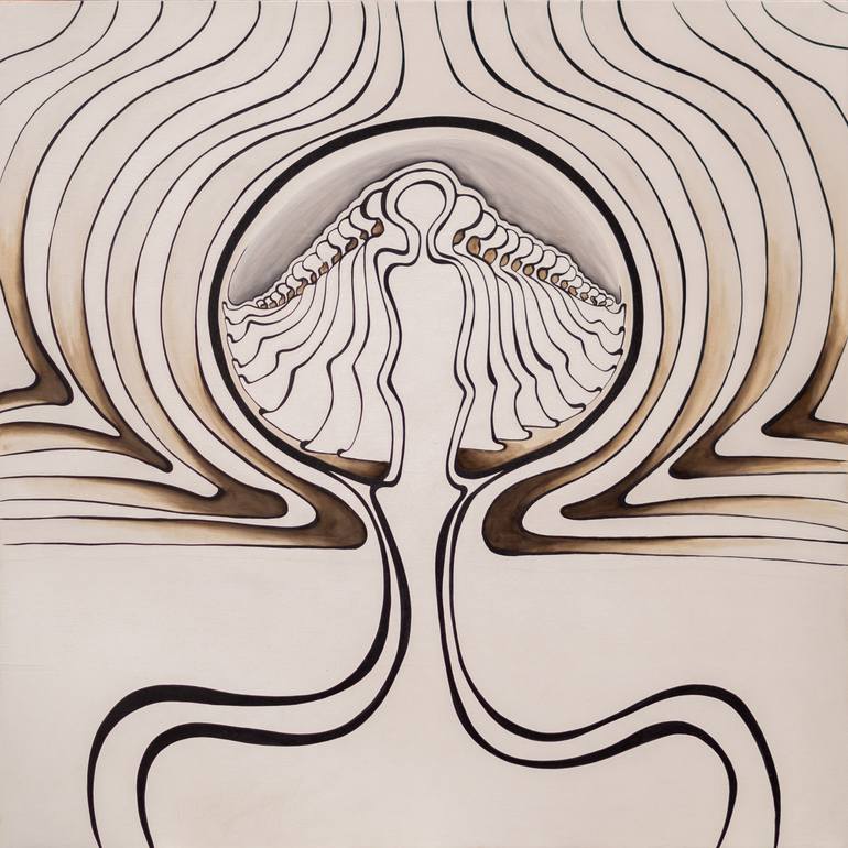 My imagination, taste and vision of three-dimensionality have for years been the basis of the work I have done for others in the world in terms of set design, design and fashion. In 2012, after two years of cohabitation with my "guardian angel," a profound and unexpected change took place in me, propelling me into a vortex of inspirations filled with Love. Abandoning all that I had done till that moment, letting go of what was no longer, almost as if it were a challenge with myself, I let my heart speak free of any constraint or requirement of others, allowing my hands to realize what the inner heart was telling to me. The beginning of this new path manifested itself in the creation of unique objects of light: perfect wooden cubes, sometimes using imperfect woods, discovered in different parts of the world. The light illuminates more their interior, rather than highlighting their surroundings. In my creative vision, I wanted to materialize the keeper of the inner light present in each of us, giving it a three-dimensional form and presence, which could best represent the material time-space in which we live. "Light cubed" is the name I have chosen for the collection of these lightning objects; together with them I began my inner journey, a kind of personal awakening in which I recognized, more than anything else, the desire to share and represent all that multiple vibrations that surround us daily, and of which the humanity we are is made of. Being able to communicate my deep feelings, including through painting, was the consequence of a natural process, even if at the time of realization it was a kind of expression that I did not know, that I had never represented. In 2018 I began painting continuous harmonic lines, edges free and on wooden bases, without ever using color. Morning coffee, India ink and a few brushes were, and still are, my rudiments, tools and materials. Just like an authentic "non-painter." The lines I paint form bodies that resemble, seemingly, human likenesses, but which I personally read, first and foremost, as continuous and different vibrations, vibrations that humanity emits at every moment, but probably cannot recognize. The free lines, interlocking, repeating and deforming, coexisting in their oneness as a whole, concealing multiple and diverse forms and situations: sometimes tragic, sometimes ethereal, often unexpected, but equally guardians of a message.