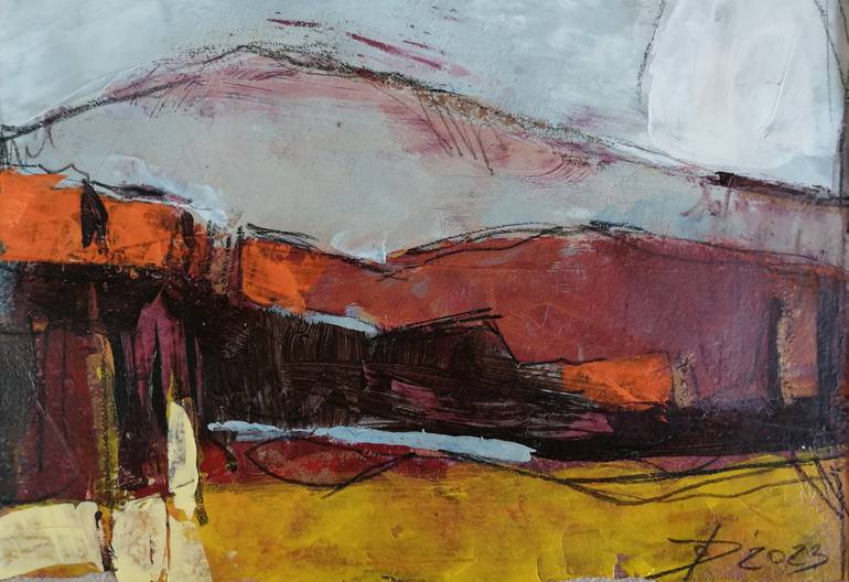 A small landscape picture. An abstract style painting on paper made with pigments, pastels and acrylics. There are other small landscapes from this series available. Framing is necessary. Size about 15x20cm. NOTE: Please note that due to different screen resolutions, colors may vary slightly in re...
