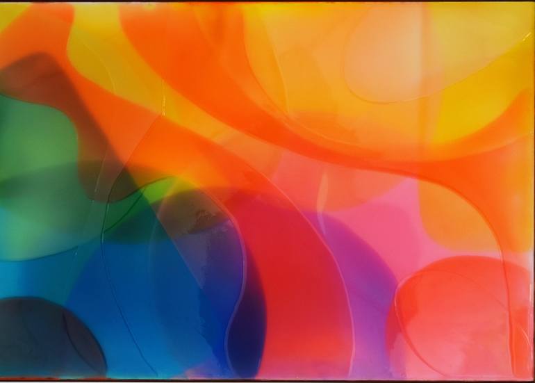 This painting is an abstract artwork made with resin on mdf. Rudy Tassos's instinct for modern innovative design forms the basis for his high gloss, archival resin film paintings. It offers a vibrancy and beauty that no other presentation can come close to matching. The highly polished surface illu...