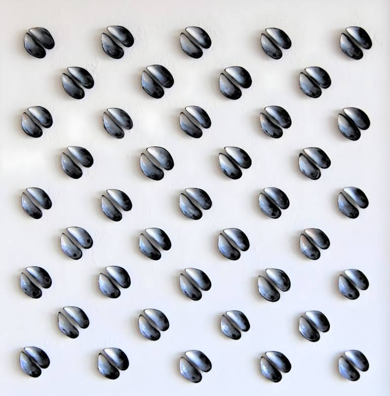 The shape of the mussels inspired me to make this minimalistic artwork. It can be hanged in different positions
