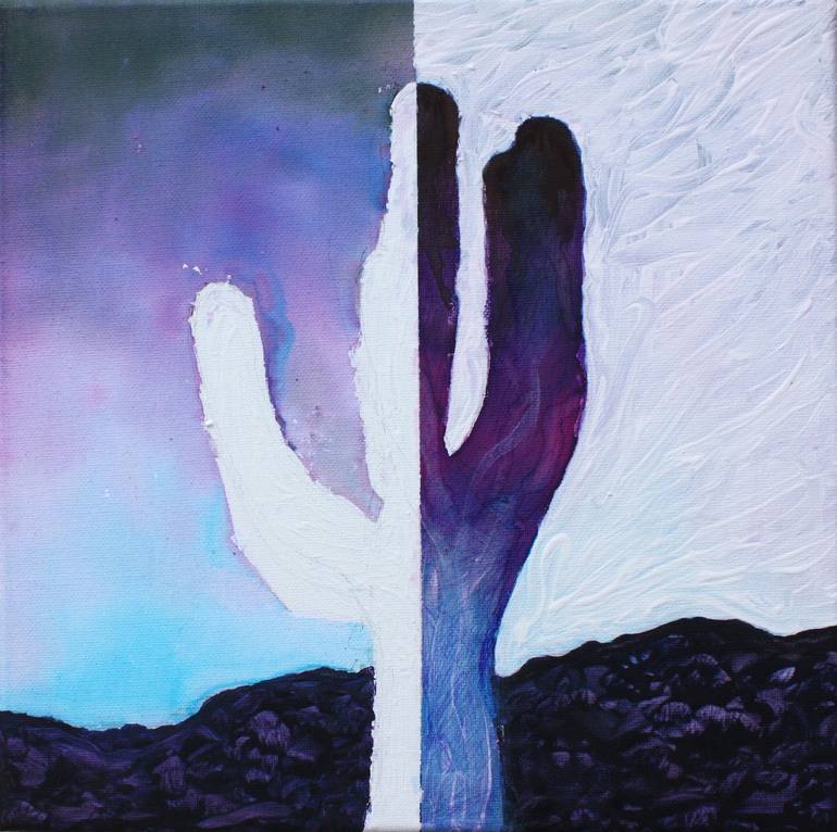 A cactus in a landscape at dawn Ink painting on canvas