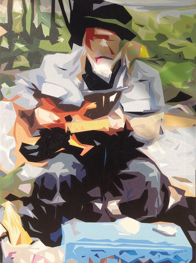 Sabino Caputo is seventy-five years young, happily sharing the joy of total submersion in the sea of paints. Sabino is not a novice with brushes. At the age of five or six, his parents gave him a paint set for Christmas; I'm sure he would have appreciated a toy truck instead. His parents saw something special in him and nurtured that talent. As a young boy he apprenticed with a local Artist in a small southern Italian town, painting landscapes and restoring/retouching "scary" frescos in old dark churches. In 1963, his family came to the United States. Two years later he attended NYCC where he majored in Advertising Art. He earned his living as an Art Director, designing and producing print ads and collateral advertising material for the next thirty seven years. After retirement, he dusted off his brushes and resumed his passion, painting. It has become a full-time experience. Is he a contemporary Artist? Depends on what the meaning of "Contemporary" is. His style today is a merging of the "Classic" and the "New", labelling it "Modern Realism." His paintings contain both abstraction and representation. They are characterized by flatly painted geometric shapes in CMYK* derived mixtures of acrylic paint. Subjects are real, emotional and contemporary. He doesn't paint to fit a decor, but snippets of life, however pleasant or unpleasant they might seem. He wants viewers to look into his "windows" and feel the time and place. When viewed from a distance, these paintings are clearly what one sees, a quiet east side cafe, a dozing 34th St. vendor, 9/11, wild flowers, etc. At close range, their contiguous geometric shapes reveal a modern style that is uniquely his. The texture is generously achieved with multiple color layering. There are no curved lines or circles in his work, just straight sharp edged/shapes. The paintings tend to invite the viewers by letting their mind fill in those missing details. Sabino is constantly working on future projects. Where he is headed is hard to predict and claims that there will be "Modernism" in his future work. His ultimate desire is to leave a body of work that will endure and give countless hours of pleasure to those that will own his paintings. July 2020, created a new website where most of the past 10 + years work can be viewed, and made it available for purchase.