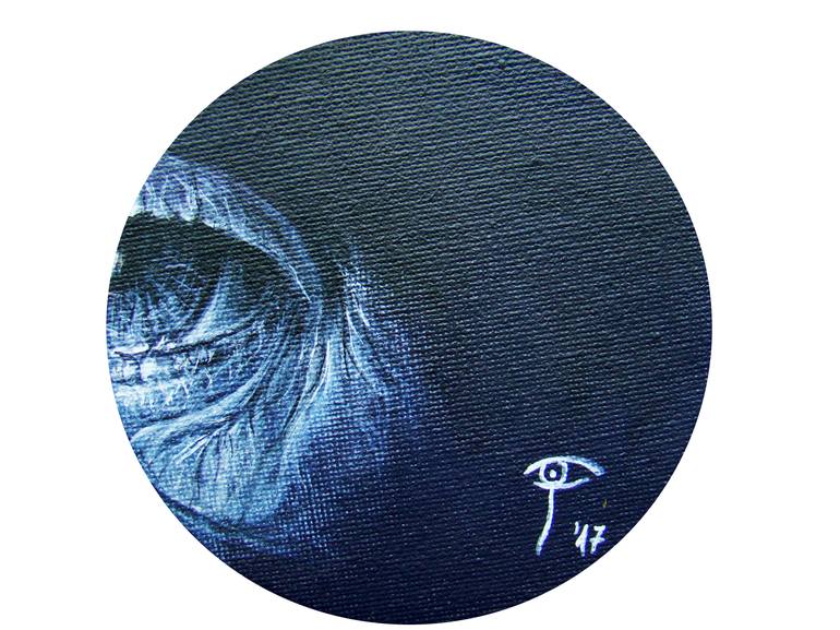 The artwork ,,Mistery II", the other version of the previous one entitled ,,Mistery I", highlights better the inner tension of a tormented soul due to the circular shape of the canvas, which is the symbol of an endless moral dynamic, that betrays stains of high tension.