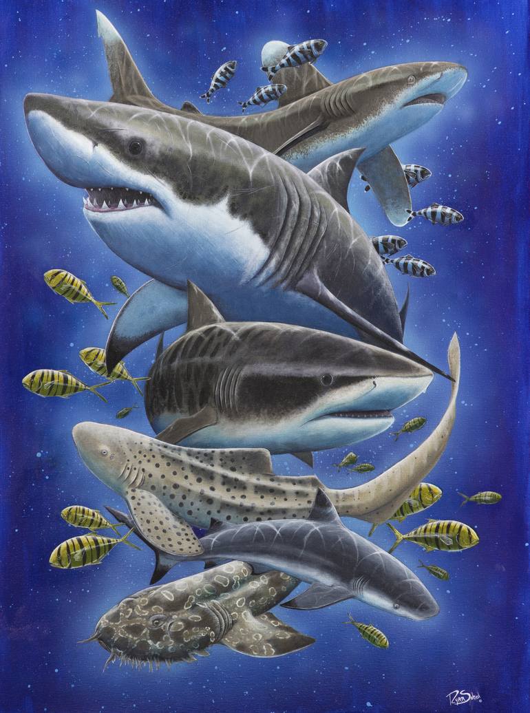 ‘Misunderstood Beauty’ depicts the creatures of the sea which have been given a notoriously mistaken reputation, sharks. From the immense power of the great white, to the wobbegong shark, a master of camouflage, sharks come in an array of colors, sizes, and shapes. This piece portrays an assortment ...