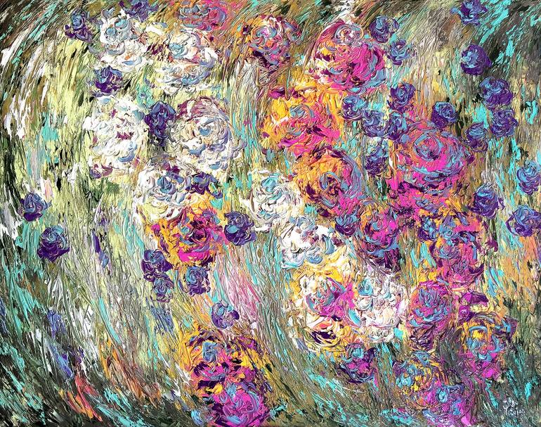 Original contemporary oil painting on canvas with a heavy texture impasto brush stroke. Signed on front. Painted edges. Artwork on supported wooden frame - stretched canvas. Wired and ready to hang, no frame needed.