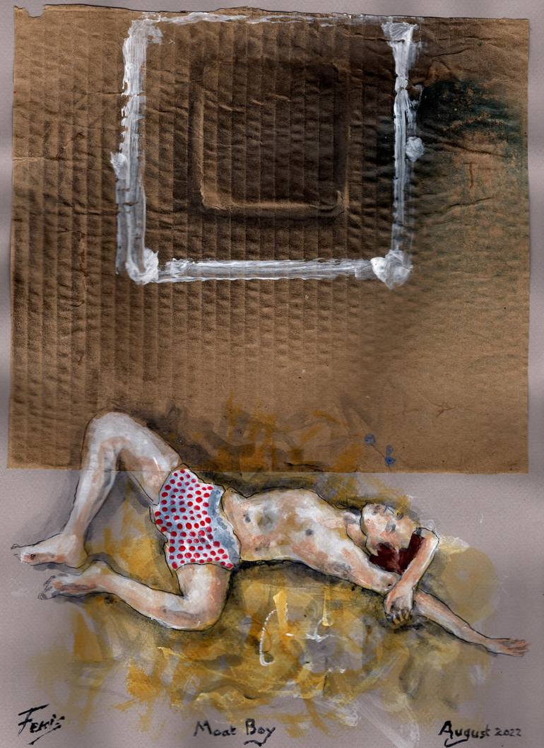 I love the way corrugated card behaves with spraypaint, etc. Harps back to my schooldays, which means a castle. Hence the glyph above. he is langorous like many adolescents, but never me.