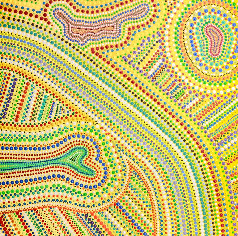 Hand painted acrylic on canvas , each dot painted separately. This is not a digital image. You can hang this painting vertically or horizontally. The artist's signature is on the back of the painting.