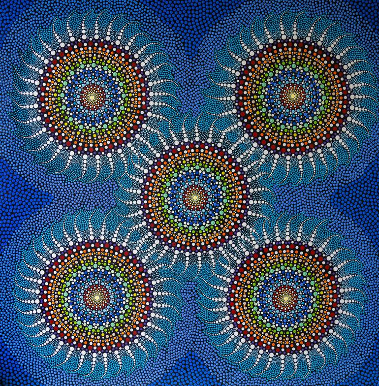 Hand painted acrylic on canvas each dot is painted separately , This is not a digital image. You can hang this picture vertically or horizontally