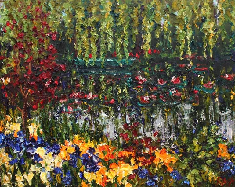 Painted in "Sculptural" impressionist style, heavy texture. Original oil on canvas, ready to hang. Frame is optional. Signed on Front. Inspired by Monet's Gardens.