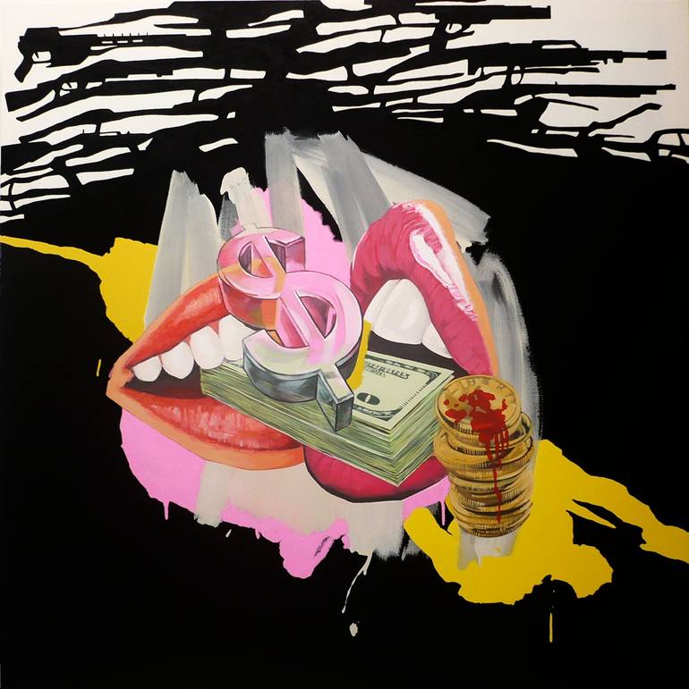 Money is part of the Current Psychotic Realism series. The leitmotif that unifies this series is a distorted and dismembered figuration, starring here by a suggestive and powerful composition that floats on the canvas against a black background. This black background connects with what I have been c...