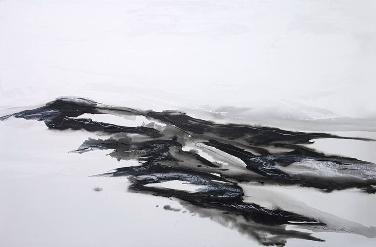 The Mono series explores a limited colour palette, strong shapes and mountainous landscapes. Mist of Time is an abstract of fjords and the rippling water in Iceland. The landscape of Iceland is so unique and inspiring - I try to achieve it with these monochromatic landscapes. Acrylic, charcoal, p...
