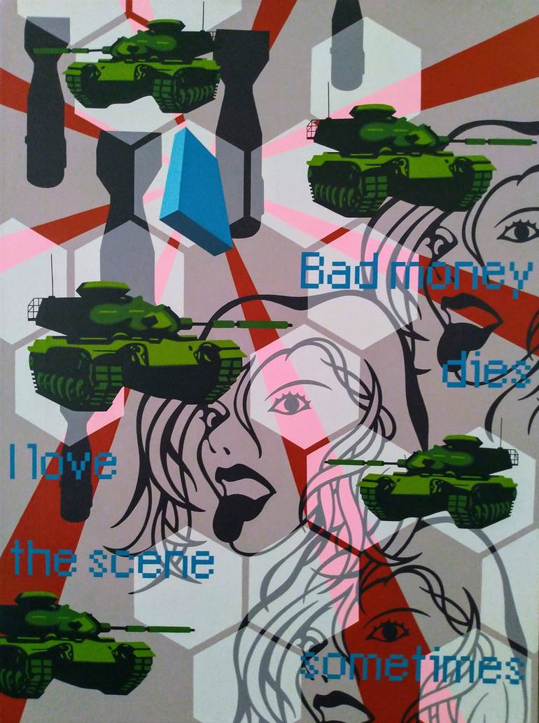 Perhaps I am painting the cruelty of contemporary life because it is in opposition to my naïve outlook. In contrast with the physical features of my paintings, I think I am visualizing my feeling of anxiety in contemporary life. Though I do not think I am fully aware of the relationship between this cruelty and my anxiety, I represent this unsure feeling as figuratively as possible, and I am trying to figure it out in my painting. Although there are some prominent aspects of our contemporary world, such as commercialism and materialism, I cannot say who my enemy is. Some of the threats might involve the art world, however to protest such issues overtly does not suit my personal outlook.