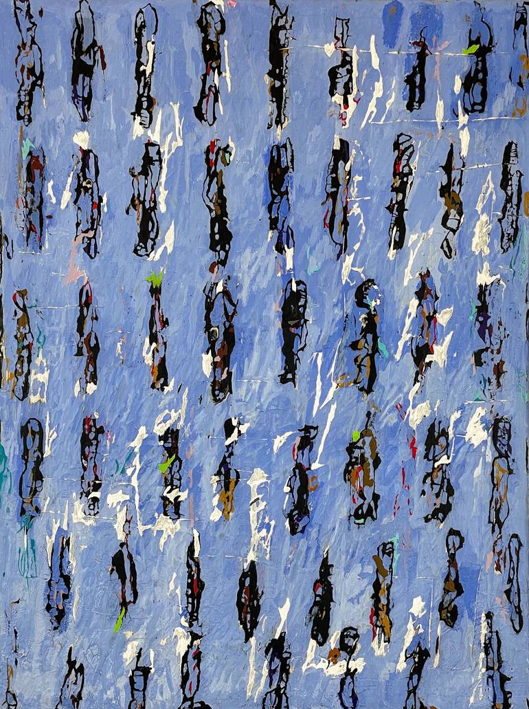 The painting is varnished & ready to hang. “My work is a gesture in a state of restraining emotions. I don't want to express a lot in my work and give it meaning. By repeating simple lines and colors, I want to show the new energy of life created by the work itself by meeting the light and the dept...