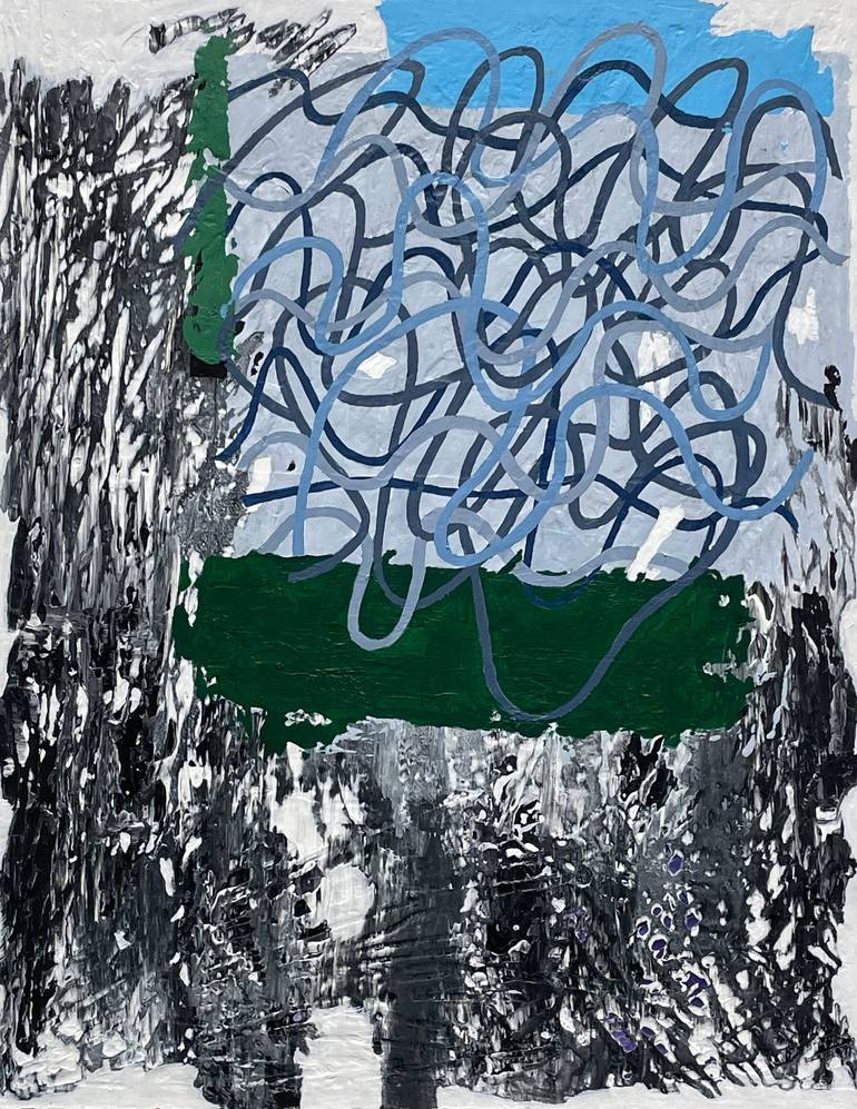 The painting is varnished & ready to hang. “My work is a gesture in a state of restraining emotions. I don't want to express a lot in my work and give it meaning. By repeating simple lines and colors, I want to show the new energy of life created by the work itself by meeting the light and the dept...