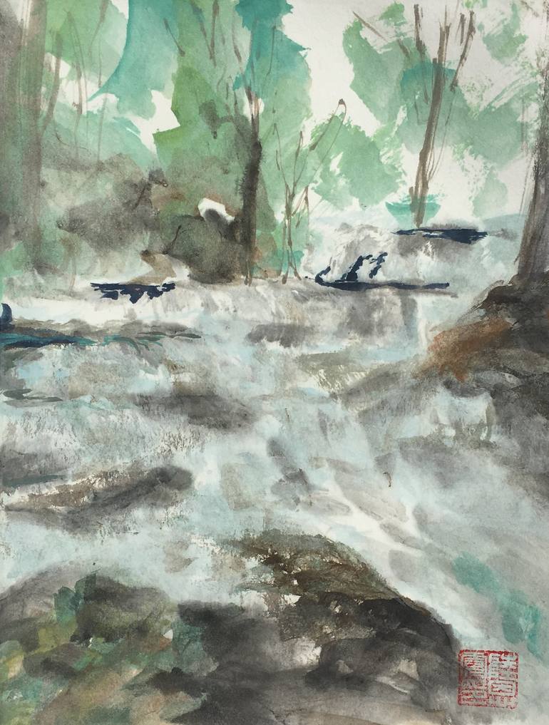 The painting made with high quality mineral paint and ink on rice paper. The artwork is done in spontaneous Chinese style and signed with author's authentic traditional stamp. Since the artwork was already mounted, it's ready to be framed. I like to paint in spontaneous Chinese style because my aim ...