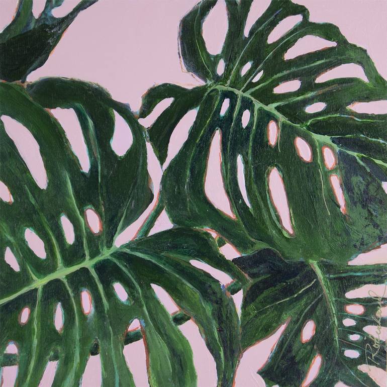 My biggest plant is getting bigger, almost out of control! It's foliage is so pretty with it's complex and unique shape. Mixed mediums on gallery wood panel, ready to hang on your wall. Sides natural wood color, matte varnish.