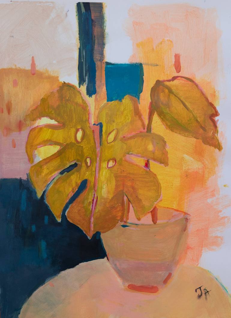 This is a painting I made with acrylic colors on Schoeller paper. I worked with a lot of water and less amount of paint in order to achieve a more transparent sense than usual. The little drops symbolize the feeling of magic I get when I look at a beautiful plant as if drops of beauty ooze from from...
