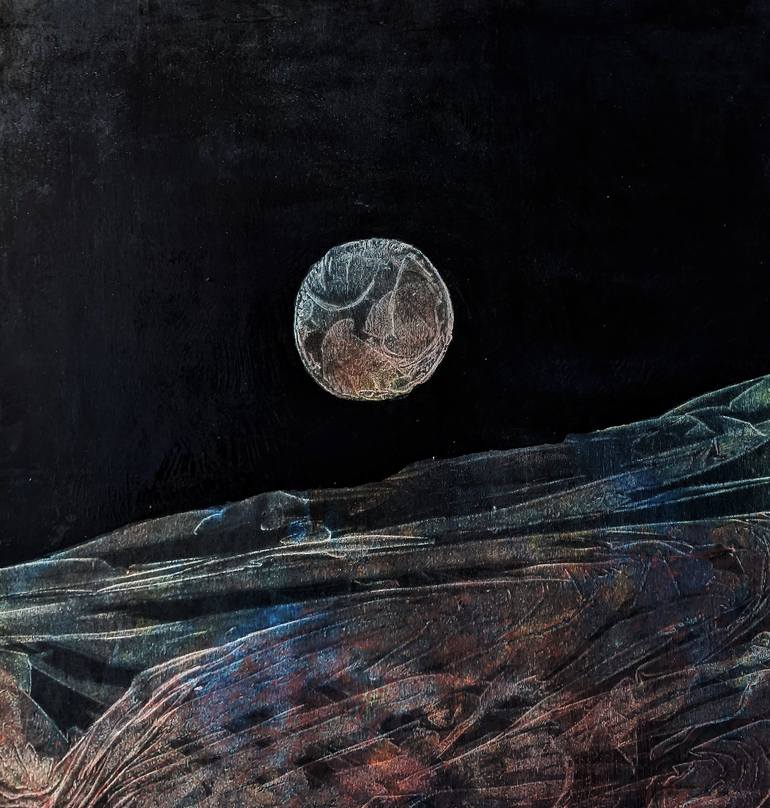 Moon. Original oil on canvas by Tiago Bárzana. Fine art.