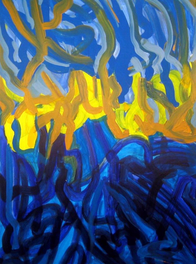 Abstract expressionist acrylic painting onj canvas 36x48 in.