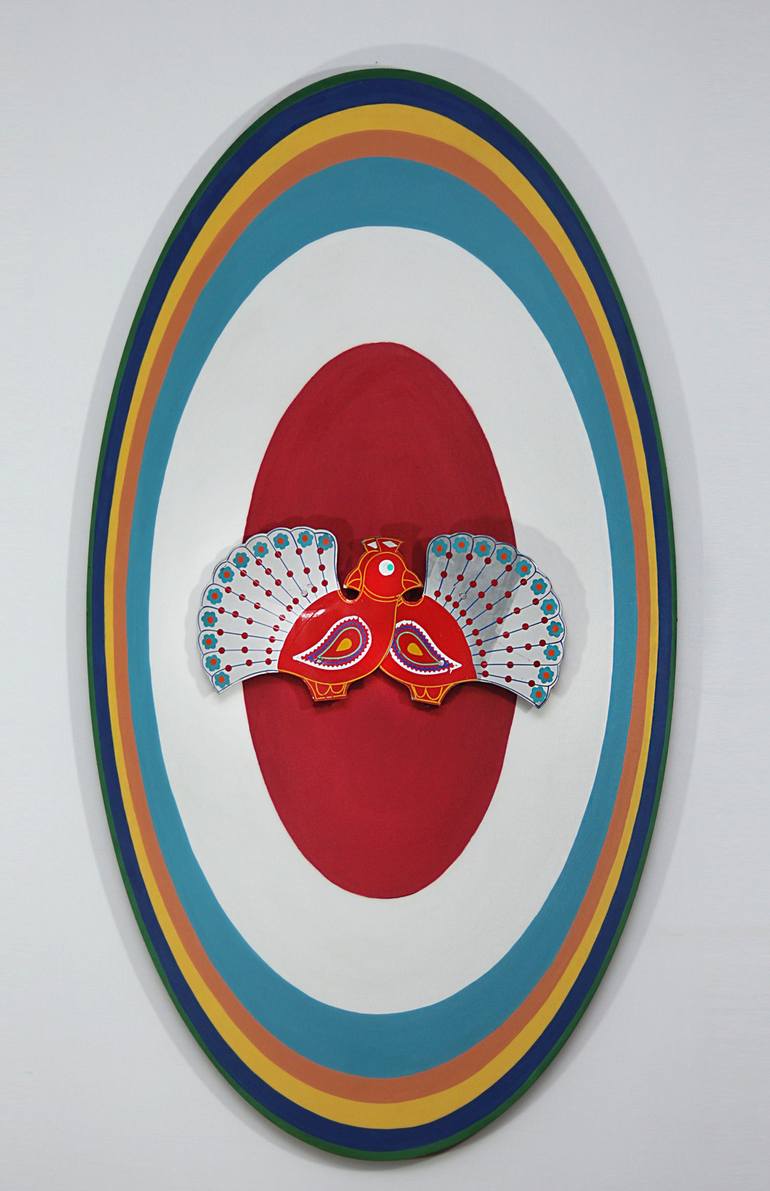 The beauty of Truck Art objects that their designs are borrowed from nature and then being stylized by the local artists in order to manufacture objects and strikers out of them for pasting on trucks in Pakistan. The painting name Moore showcasing an iridescent display of rich blues, vivid greens, a...