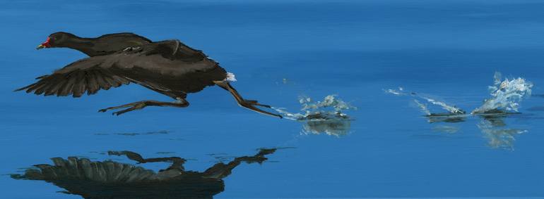 In and on the water this bird is in its element - Athletic, graceful. Quite a contrast with its more clumsy movement on land. I didn’t want to clutter the painting with anything else, just to focus on the movement of the bird. Beautiful. And I love the colour blue. I have painted around the edges ...