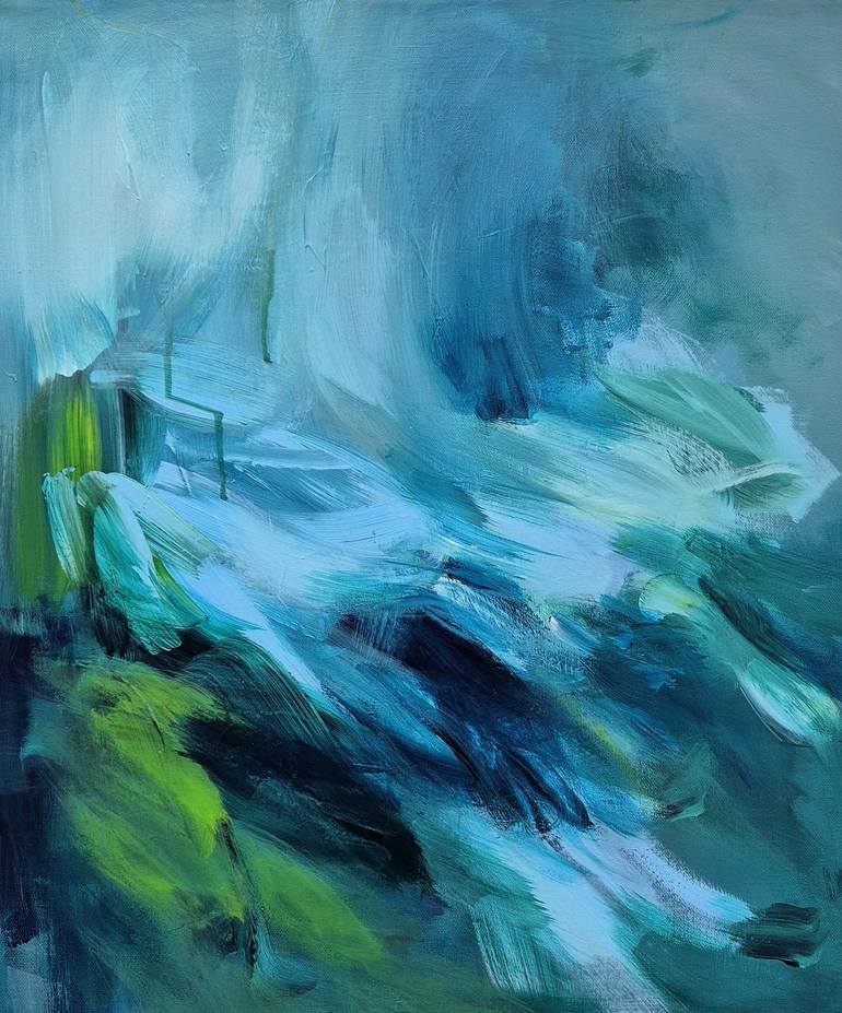 Relaxing shades of green spread out to form a carpet, a piece of moss... Painting on 50x60x4 cm, the frame is 4 cm deep for direct hanging.