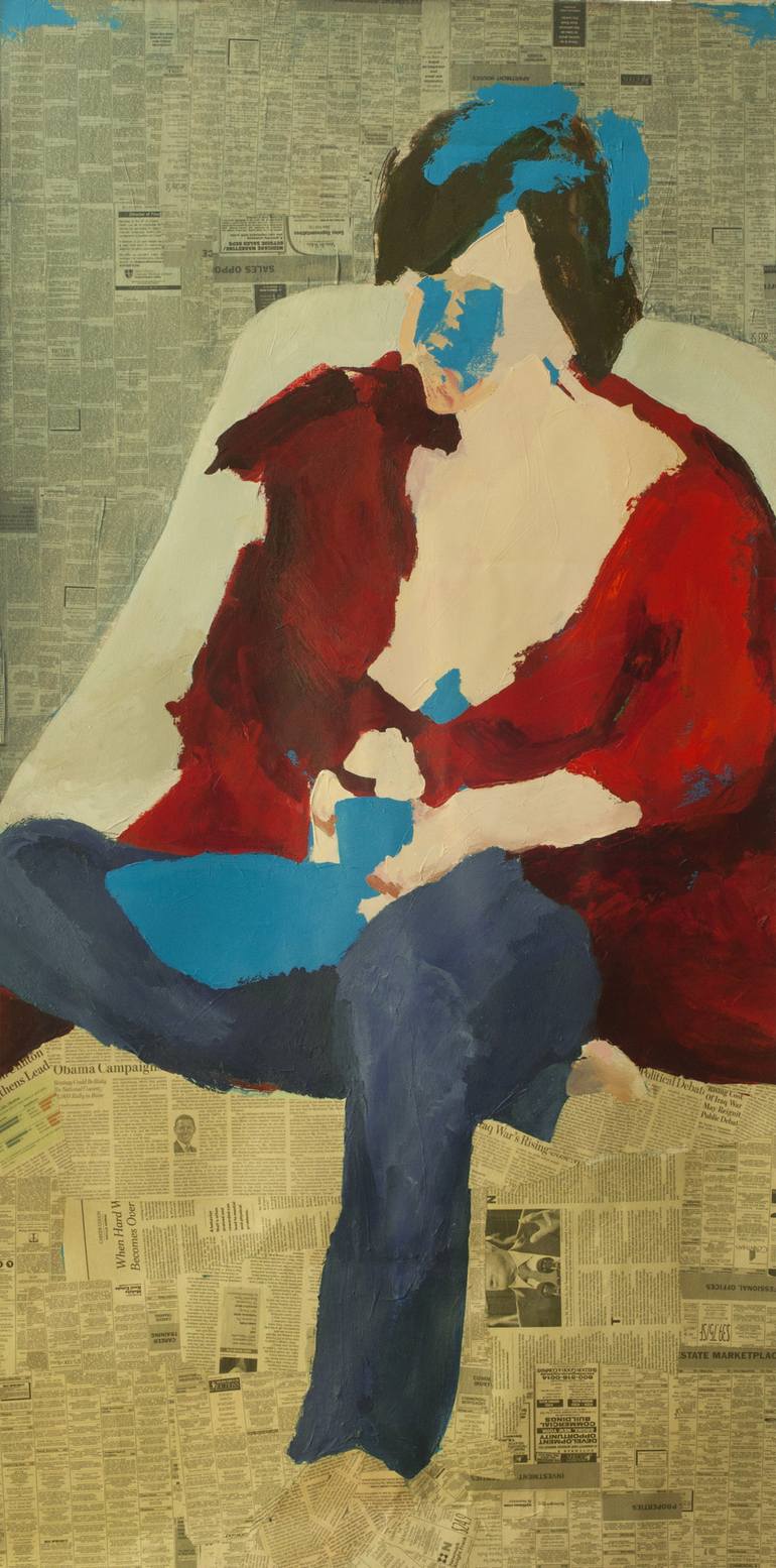 Red Robe. 60 x 30 inches, acrylic and collage on canvas. Painted from life.