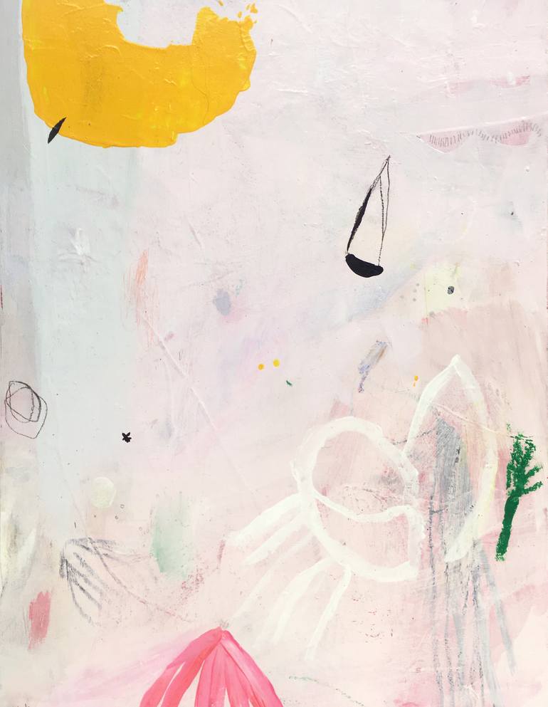 Creating new things, dreaming and thinking about creating has been my first love. Ever since I was a child I’ve loved handicrafts. I have learnt to appreciate the randomness and imperfection of handmade items. They show us the beauty of imperfection. I think it’s part of nature and makes art works truly come to live. What I try to find and to convey in my art is that we can see beauty in everything if we just pay attention. I love colors and my favorite materials are things that have their own story, like worn textiles, used/found cardboard and (vintage) paper. In my paintings I combine collaged pieces of these materials with paint. I like to stitch them together and use stamps and yarn in my work. I’m always experimenting to find new ways to express myself. And at the end, when the work is completed, i hope to find new surprises in my work, just like in my childhood.