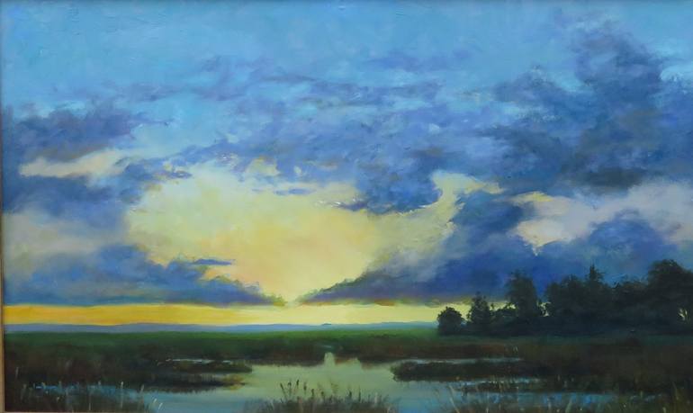 This painting exudes my feeling of peace in the early morning juxtaposed with the impending potential for a weather event. I like to portray the balance of nature in God's creation.