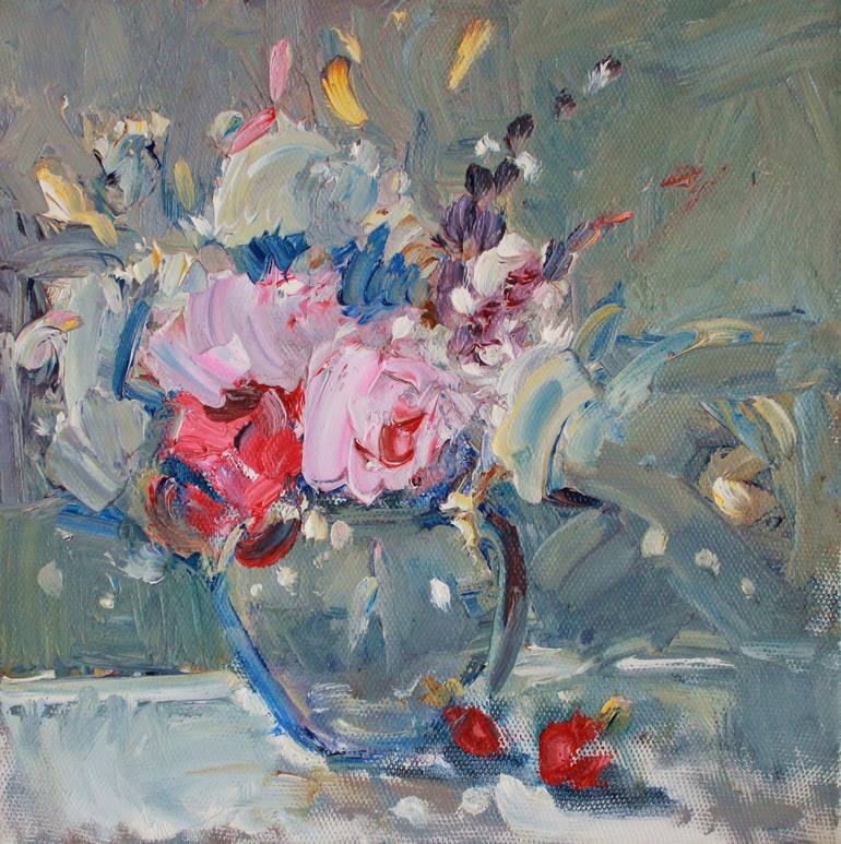 Morning mood 30х30 oil on canvas A beautiful bouquet of wildflowers warming every morning on a summer and winter day.