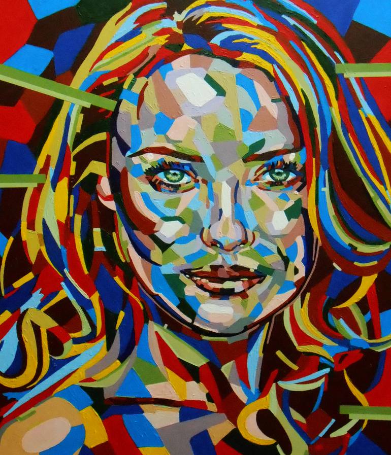 "Mosaic Portrait. Faces III" Original work Oil on canvas 70x60 cm The painting is painted over around the edges and can be used without a frame.