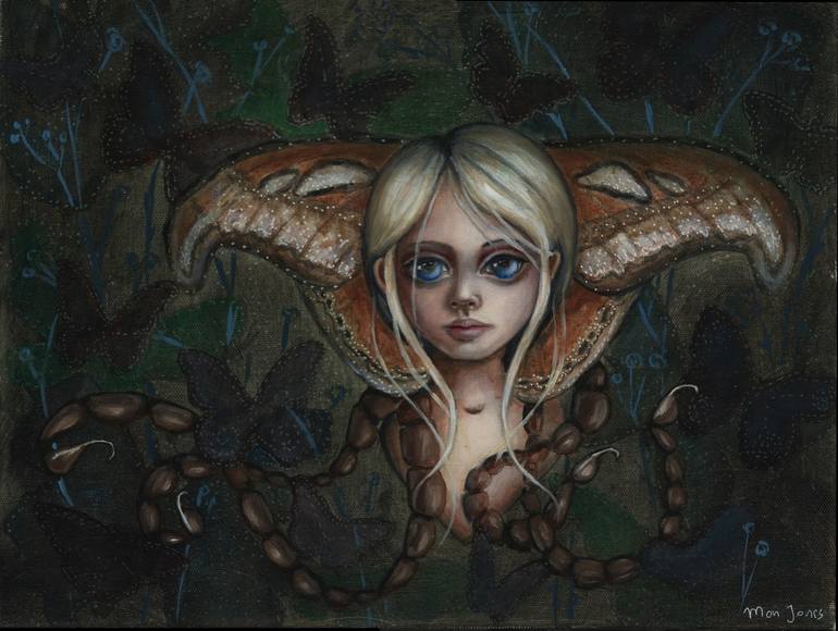 This particular fine art fairy painting is inspired by the Florida Moths that I often see in my backyard. These moths are not only huge and beautiful, but they always seem that they are on the hunt for something in the darkness. After seeing them I felt that I needed to create this particular fairy...