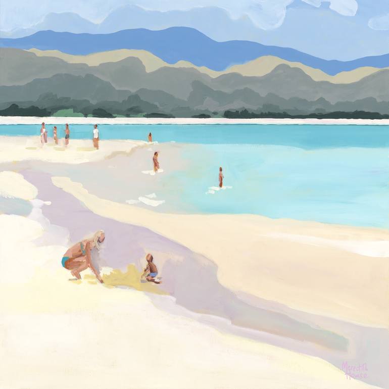 Mother and Child at Lanikai Beach by Meredith Howse, beautifully captures the summer time feel of fun at the beach. The artwork portrays a mother and child building sandcastles at Barack Obama's favourite beach in Hawaii, USA. The colour palette chosen for this artwork reflects the coastal tones as...